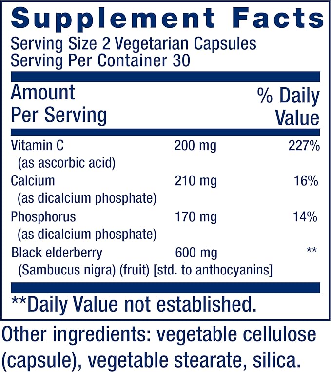Life Extension Black Elderberry + Vitamin C, Everyday Immune Support from Elderberry & Vitamin C, Gluten Free, Non-GMO, Vegetarian, 60 Capsules