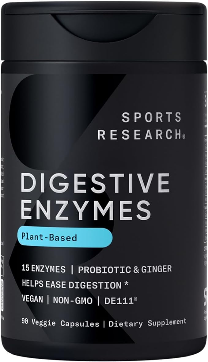 - HELP EASE STOMACH DIGESTION: Digestive Enzymes from Sports Research is specially formulated to help you digest proteins, fats, fruits, vegetable fiber, dairy products, and carbohydrates, resulting in better nutrient absorption and less digestive discomfort*