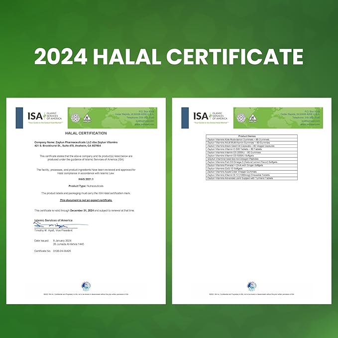 - HALAL CERTIFIED: Our Vitamin D3 5000IU supplement is Halal certified by the Islamic Services of America, ensuring that it meets the strict dietary requirements of our customers.