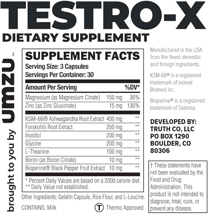 UMZU Testro-X Testosterone Supplement for Men | Support Energy, Strength, Stamina & Healthy T Levels (30 Day Supply | 90 Capsules)