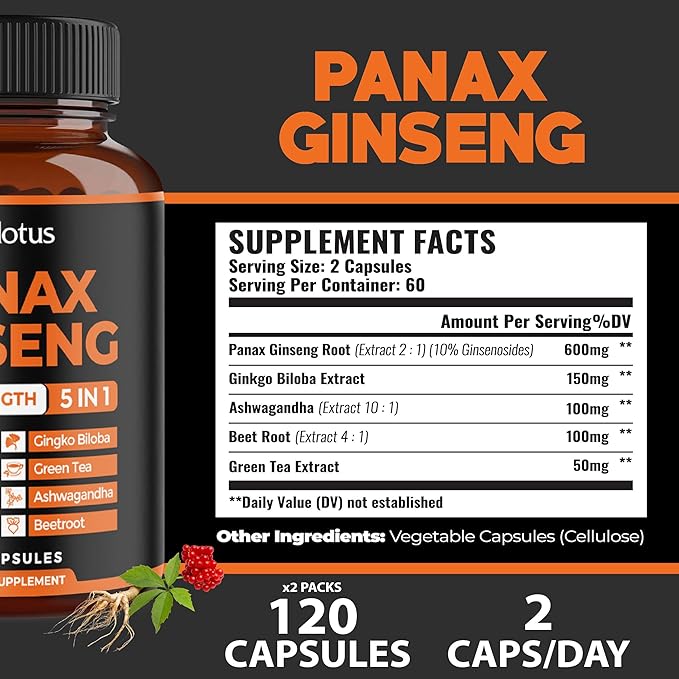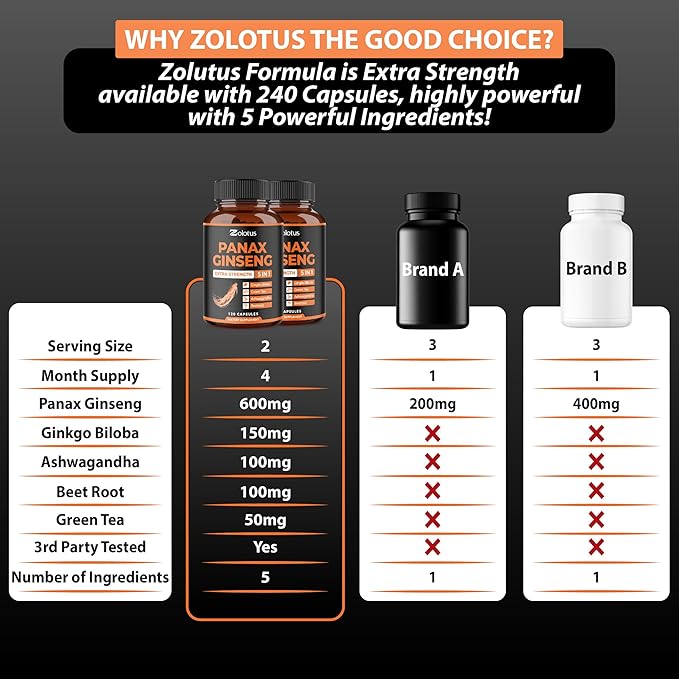 - ✅ 5-in-1 Formula: Zolotus Panax Ginseng supplements include Gingko Biloba, Ashwagandha, Beetroot, and Green Tea Extract. These ingredients provide health benefits for both men and women.