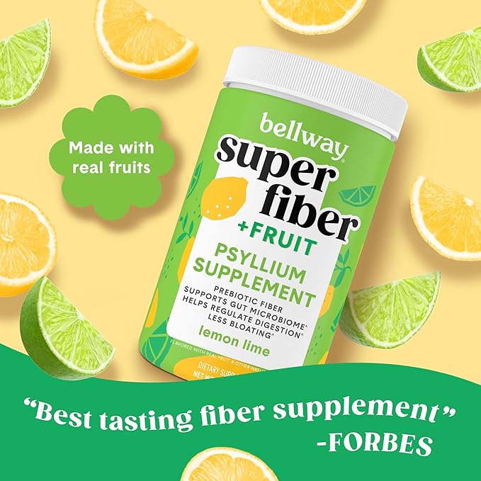 Bellway Super Fiber Powder + Fruit, Sugar Free Organic Psyllium Husk Powder Fiber Supplement for Regularity, Bloating Relief & Gut Health, Non-GMO, Plant-Based, Lemon Lime (50 Servings)