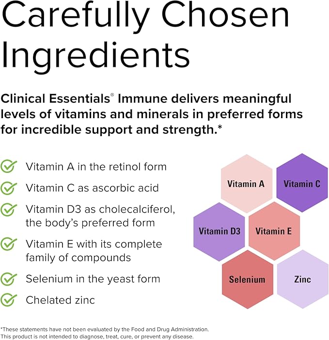 - Carefully Chosen Ingredients; This powerful blend contains carefully chosen forms of premium vitamins & minerals to help nourish the foundation of your immune system; Includes vitamins A, C, D3, and E, plus zinc & selenium