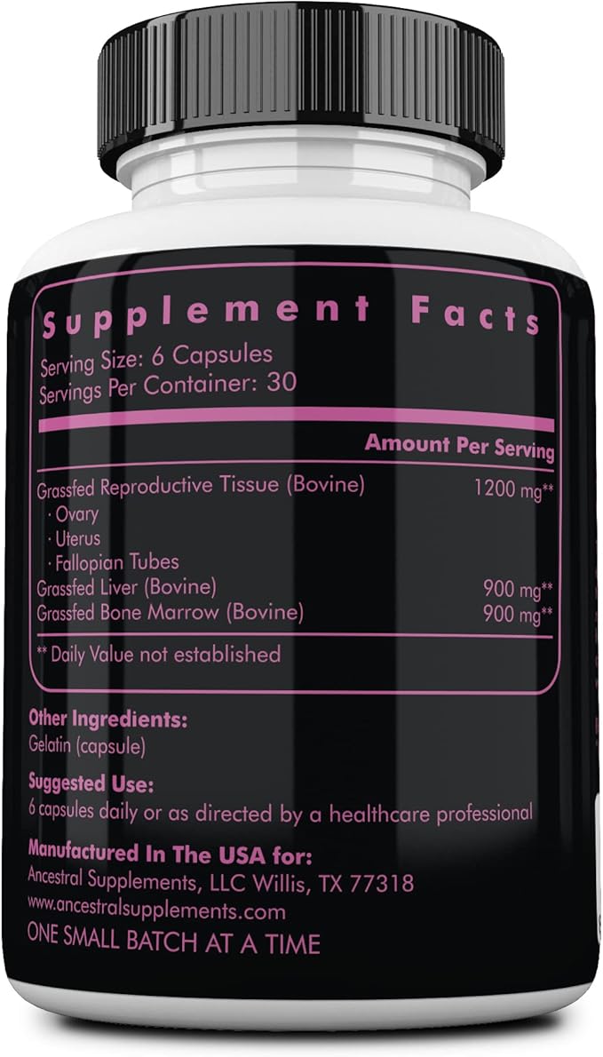 - BONE MARROW CAPSULES: Each 500mg capsule of Ancestral’s women’s liver supplement contains a bone matrix, bone marrow and cartilage, high concentrations of stem cells, growth factors, and fat-soluble activators.