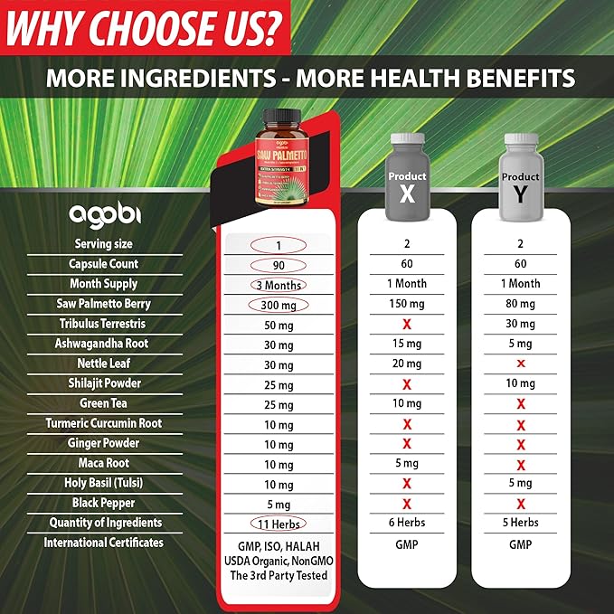 - 🌿 Herbal Saw Palmetto Complex maintains balance with exercise and a healthy lifestyle. Discover the benefits of Agobi Dietary Supplements for safe and healthy living.
