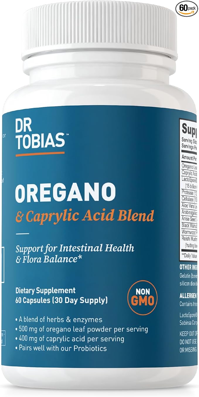 Dr. Tobias Oregano and Caprylic Acid Blend, Gut Flora Balance Complex, Intestinal Health & Immune Support with Herbs & Probiotics, Gut Health Supplements for Women & Men (60 Count (Pack of 1))