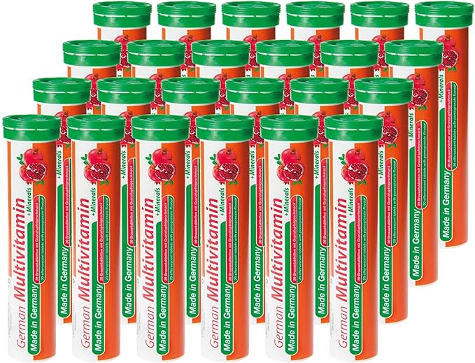 T&D German Multvitamin + Minerals 10 Vitamins 2 Minerals - 480 Vegan Drink Effervescent Tablets - Pomegranate Flavor - Made in Germany