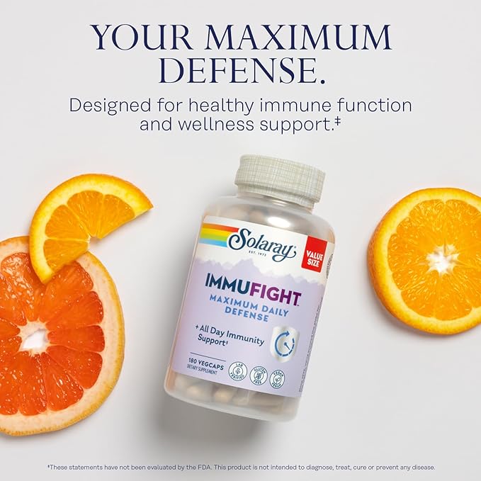SOLARAY Immufight Maximum Daily Defense, All Day Immune Support, Vitamin C, Vitamin D, Zinc, Probiotics, Monolaurin, Acerola & More, Vegan & Gluten Free, 60 Day Guarantee (180 CT, 60 Serv)