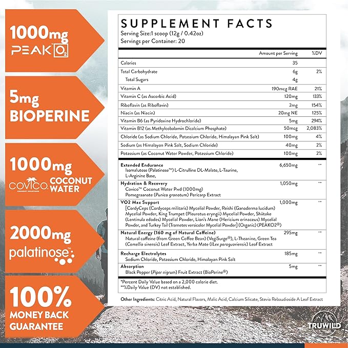 - SUSTAINED ENERGY SUPPORT: Most pre-workout powders are designed to support an hour of indoor exertion. TRUWILD Motion utilizes 5 trademarked ingredients to deliver sustained energy support and ongoing hydration with electrolytes and coconut water.*