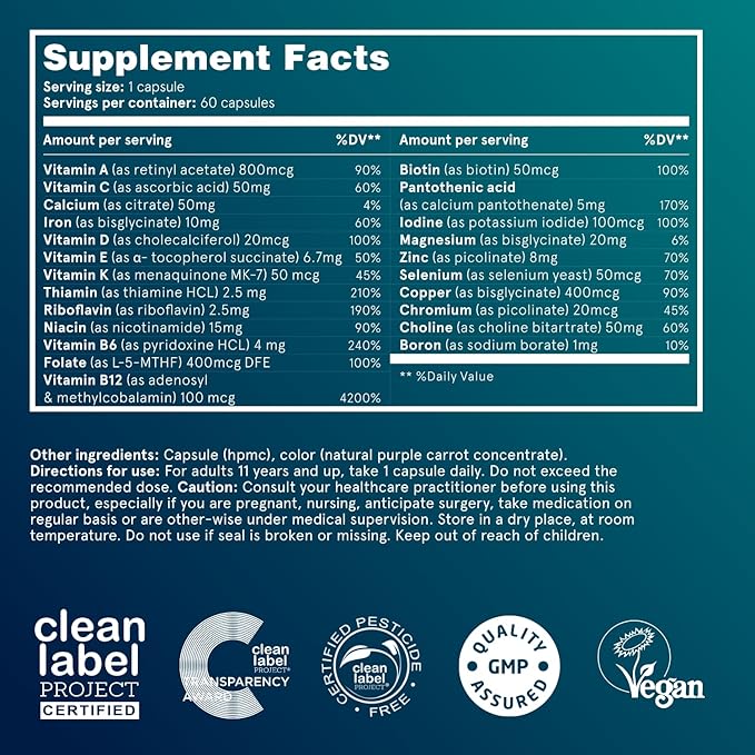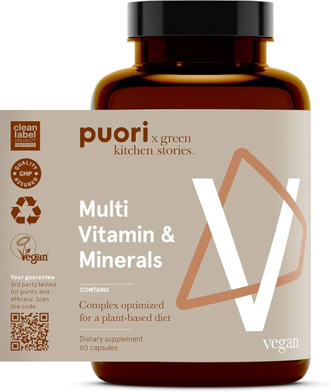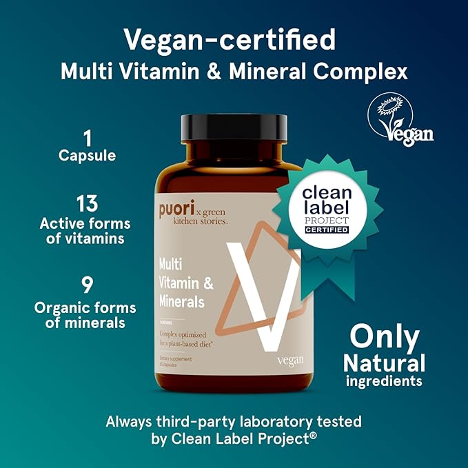 Puori Multi-Vitamin and Mineral Complex - 60 Vegan Capsules - Vegan Certified with 13 Essential Vitamin and 9 Minerals - for Overall Health, Nervous and Immune System - Dairy-Free, Vegetarian