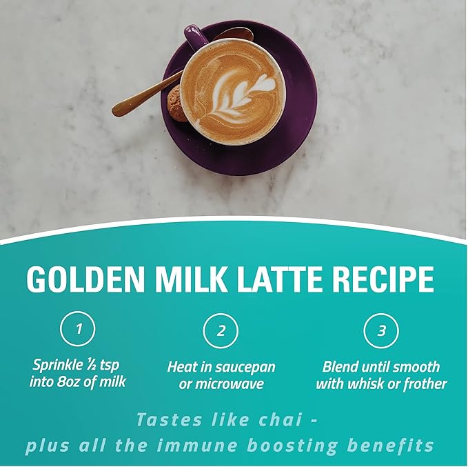 - Optimize your health and get moving with Golden Milk Powder Immune Support that boosts your immunity and supports healthy immune functions with turmeric, curcumin extract, ginger, black pepper, cardamom, ginger, and cinnamon. a tasty, superfood mix of mind-and-immunity-boosting turmeric with curcumin, black pepper, cardamom, ginger, cinnamon––and tastes just like your favorite chai tea latte