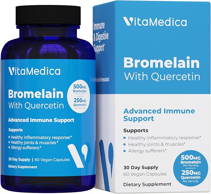 VitaMedica Bromelain & Quercetin Supplement - 500mg Bromelain 250mg Quercetin - 2400 GDU for Immunity, Joint Support, Inflammation and Muscle Recovery - 60 Vegan Capsules - 30 Servings