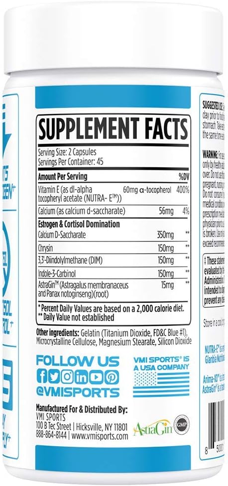 VMI Sports Arima-XD 60 Count, Natural Hormone Balance, Anti- Aromatase Cortisol Blocker for Men and Women, Supplement to Support Balanced Testosterone & Estrogen Hormone Levels On or Off Cycle (90 ct)