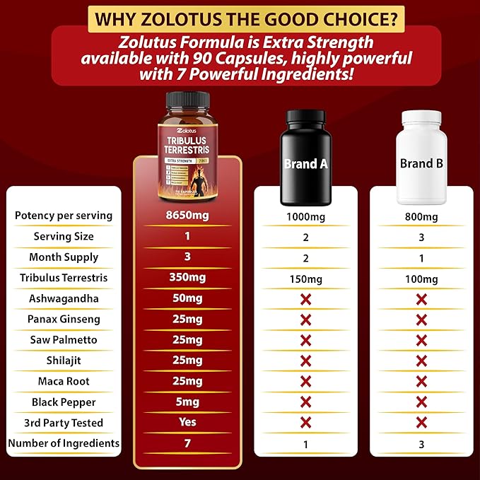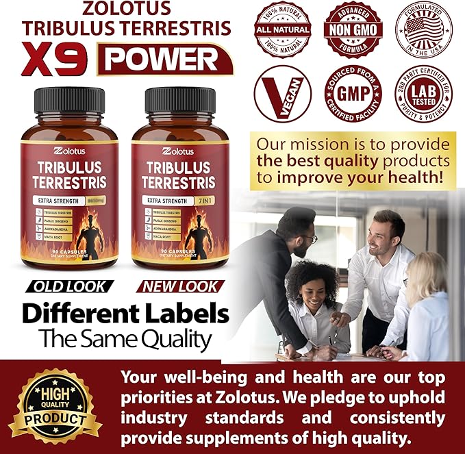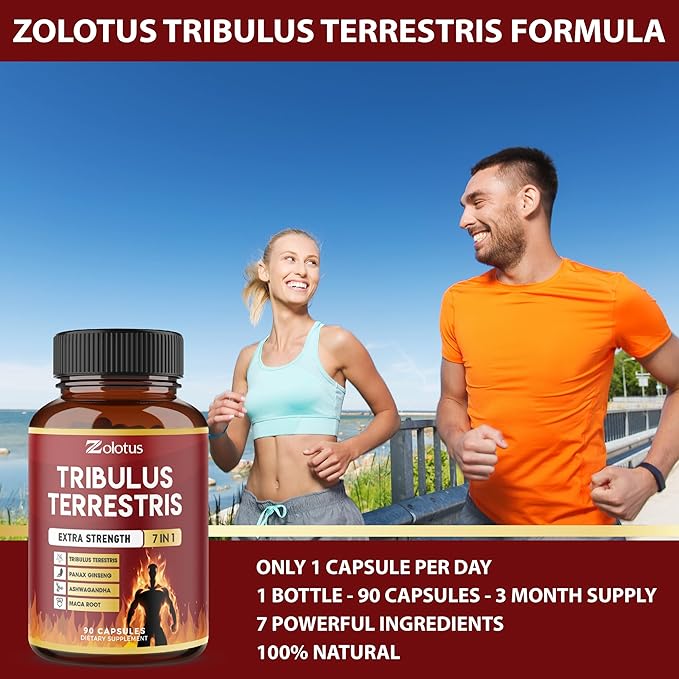 Tribulus Terrestris Capsules, High Potency with Ashwagndha, Panax Ginseng, Saw Palmetto, Maca, Shilajit. Boost Energy, Mood, Stamina, for Men & Women, 3 Months Supply.