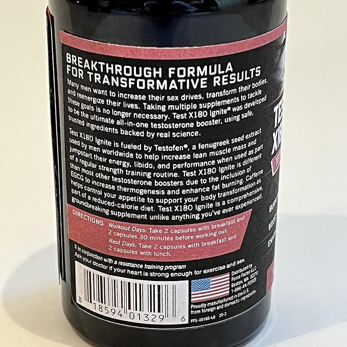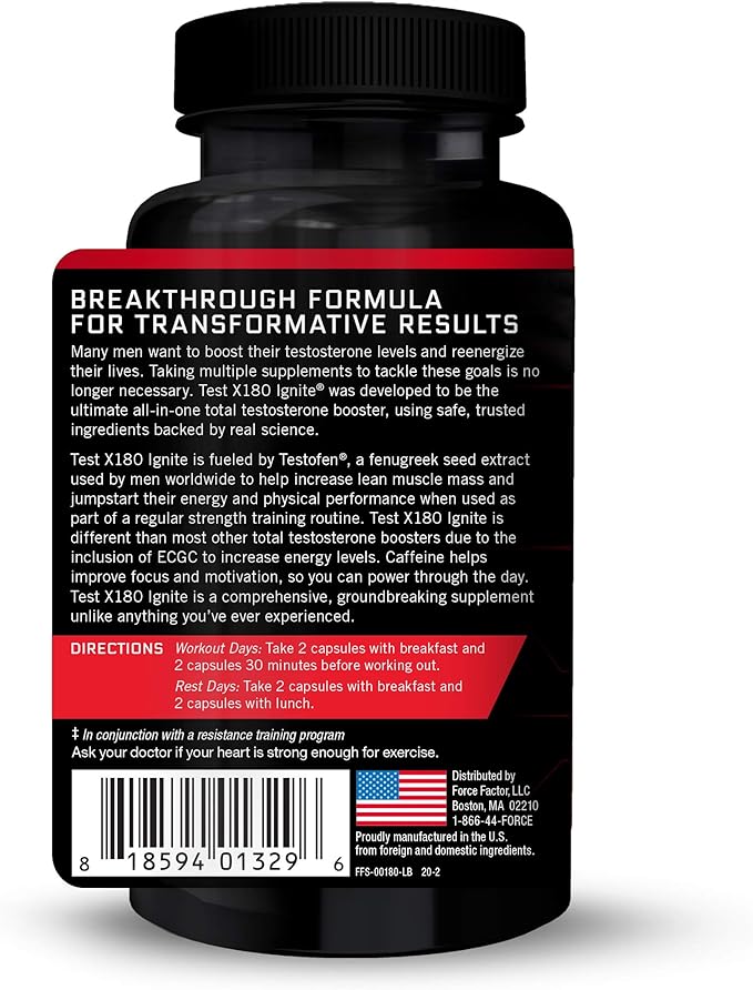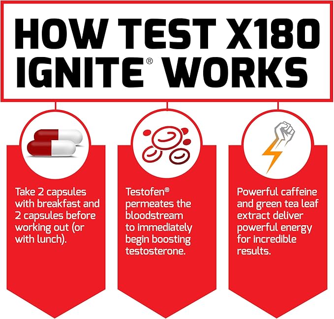 - BOOST TOTAL TESTOSTERONE LEVELS: Increasing total testosterone is the answer for men who want to build muscle and take charge. Test X180 Ignite contains Testofen, a specialized fenugreek seed extract, to help you feel like a superhero in the gym.