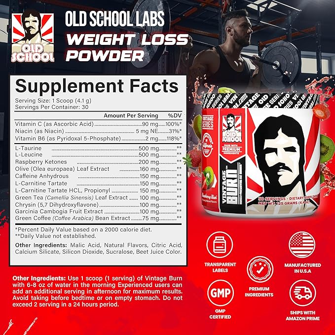 Vintage Burn β Fat Burner Powder for Men and Women β Delicious Thermogenic Fat & Weight Loss Drink - Green Coffee Bean, Caffeine, Raspberry Ketones β Strawberry Kiwi Flavor - 30 Servings