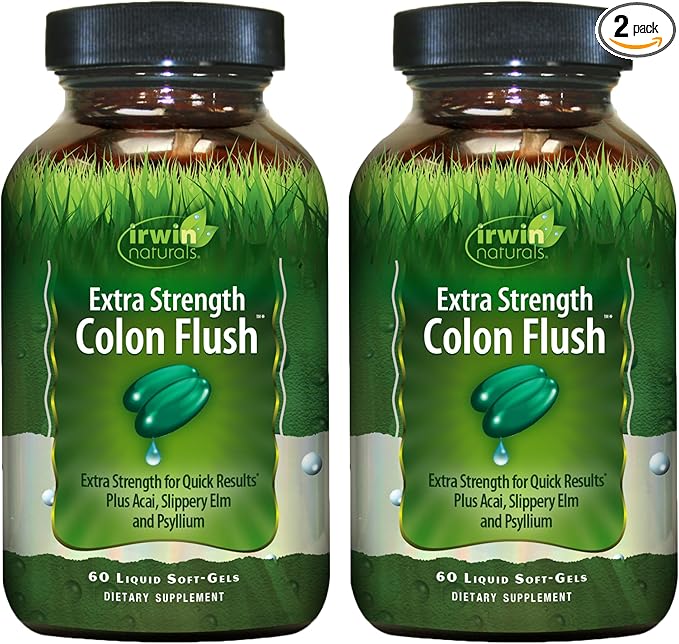 Irwin Naturals Extra Strength Colon Flush, with Acai, Slippery Elm, and Psyllium | 60 Liquid Soft-Gels