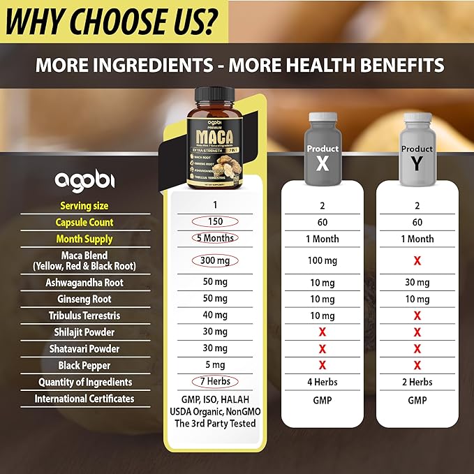 - ✅ Maintain a healthy balance by incorporating exercise, and herbal supplements into your lifestyle. Discover the benefits of Agobi Maca Supplement; Embrace safe and healthy living for a vibrant and fulfilling life.
