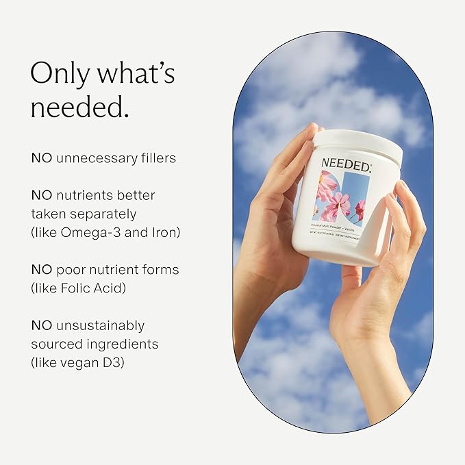 Needed. Vanilla Multivitamin Powder with Choline for Prenatal, Pregnancy, Breastfeeding, Postpartum | Expertly-Formulated & Third-Party Tested | 30-Day Supply