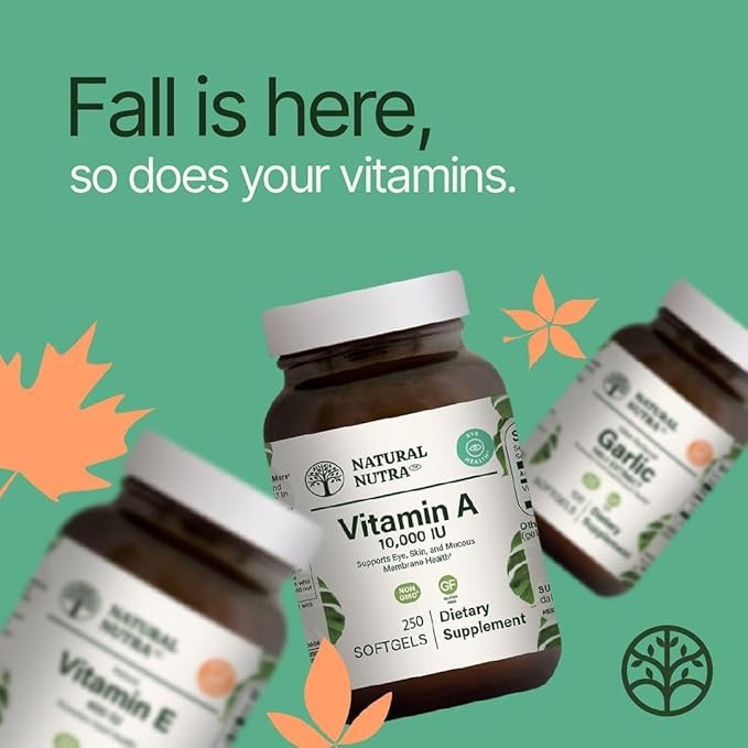 Natural Nutra Vitamin A 10,000 IU Softgels – High Potency Eye and Skin Vitamins – Gluten-Free Vitamin A Supplement for Sight & Skin Health – Fish Liver Oil for Men and Women, 250 Softgels (2 Pack)