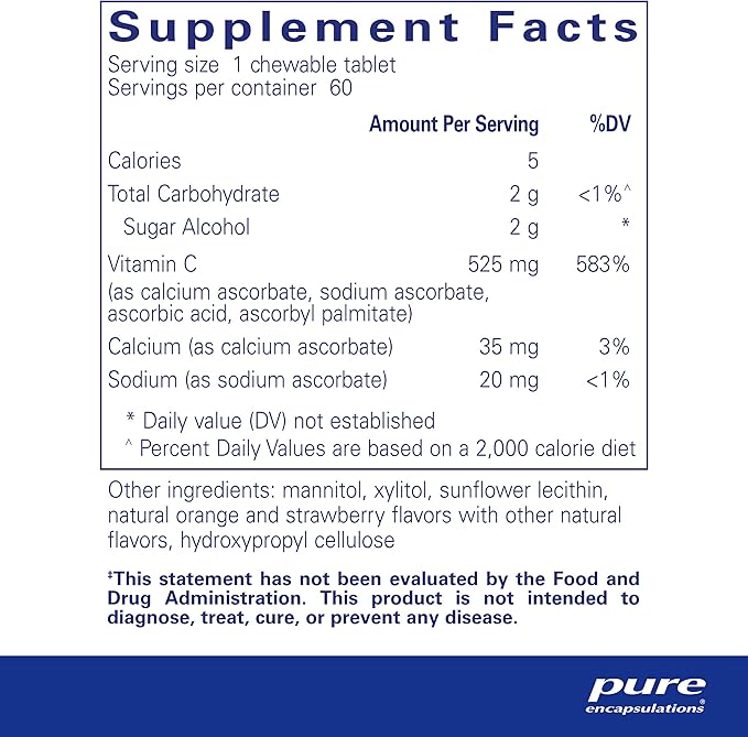 Pure Encapsulations Vitamin C Chewables | Support for Healthy Immune Function and Antioxidant Support* | 60 Chewable Tablets | Natural Orange-Strawberry Flavor