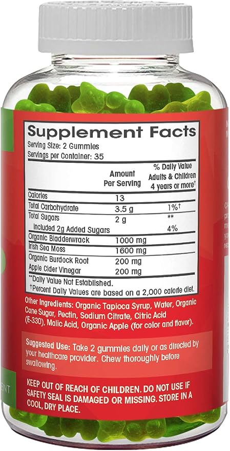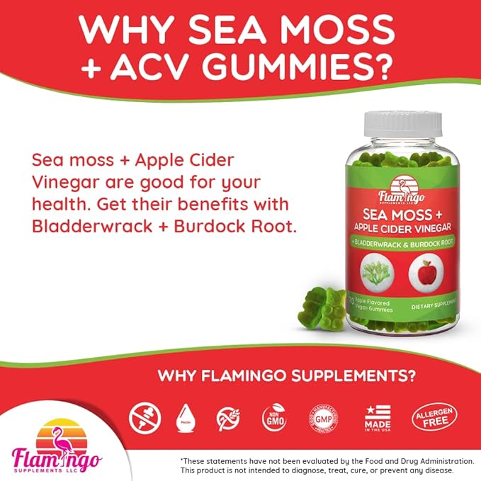 - Our gummies are made in the USA under GMP certification: The highest quality and safety standards. With no artificial flavors or preservatives, our organic and delicious vegan gummies provide all the benefits of Irish Sea Moss and Apple Cider Vinegar in one easy-to-take supplement.