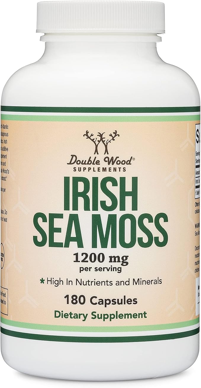 Irish Sea Moss Capsules, More Potent Than Sea Moss Gel Extract (180 Count, 1,200mg per Serving) (from Wildcrafted and Raw Chondrus Crispus) Nutrient Rich Superfood High in Minerals by Double Wood