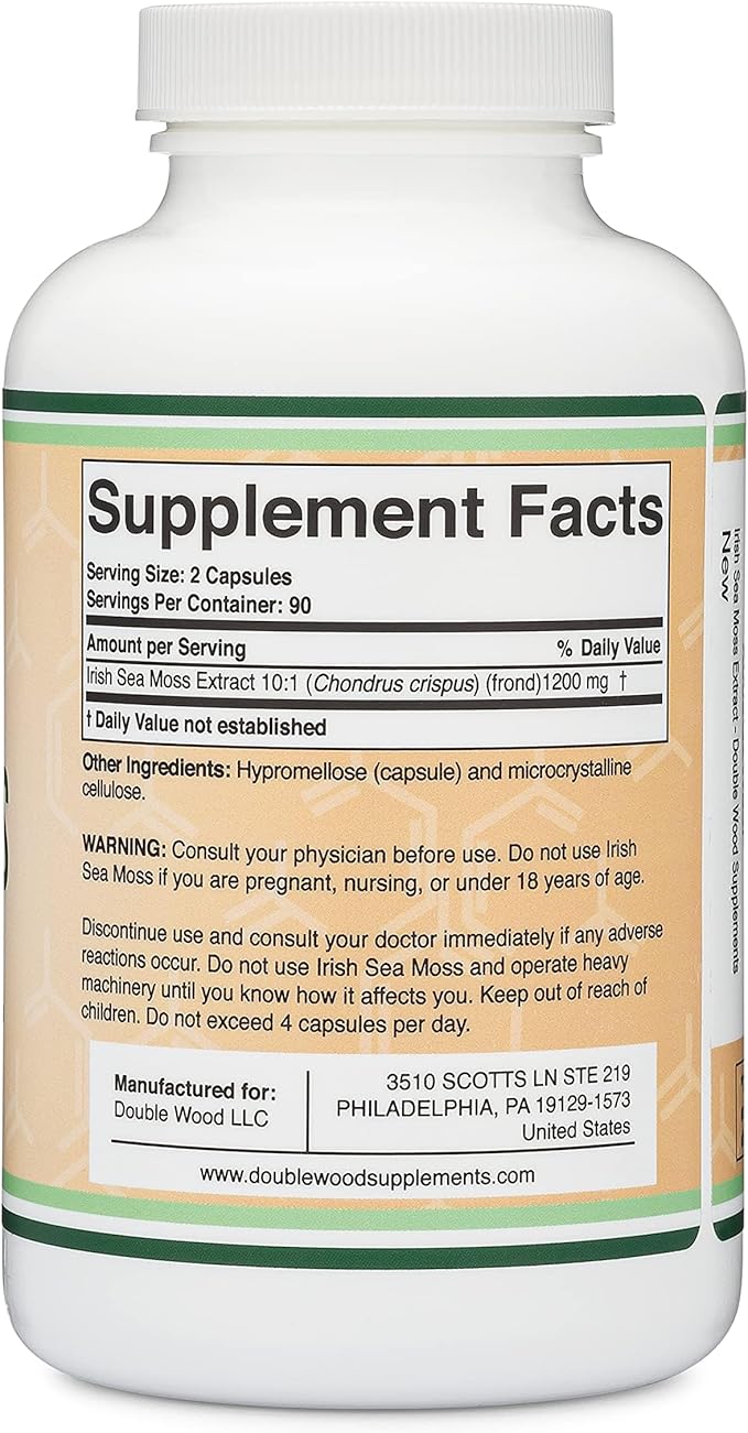 - ROOTED IN QUALITY: Manufactured and Tested in the USA from Globally Sourced Ingredients. Double Wood's Irish Moss is manufactured and tested for safety right here in the USA from Globally Sourced Ingredients. Plus, it is Non-GMO and gluten-free