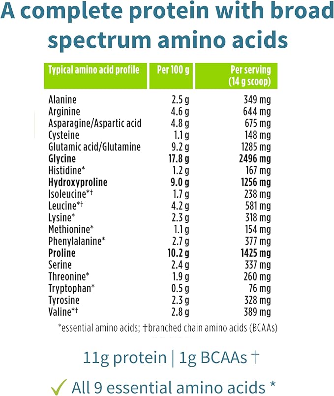 - 2 in 1 COLLAGEN & PROTEIN POWDER – providing 21 total amino acids, this complete protein (with all 9 essential amino acids) also provides 11g protein & 1g BCAAs per serving from natural plant-based protein powders brown rice, pea, pumpkin seed & sunflower seed