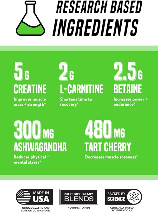 - Backed By Science: Our deliciously flavored post-workout powder for men and women contains ingredients backed by peer-reviewed scientific research at the proper dose to maximize your muscle recovery, including Creatine Monohydrate, Betaine, Tart Cherry Powder, and L-Carnitine