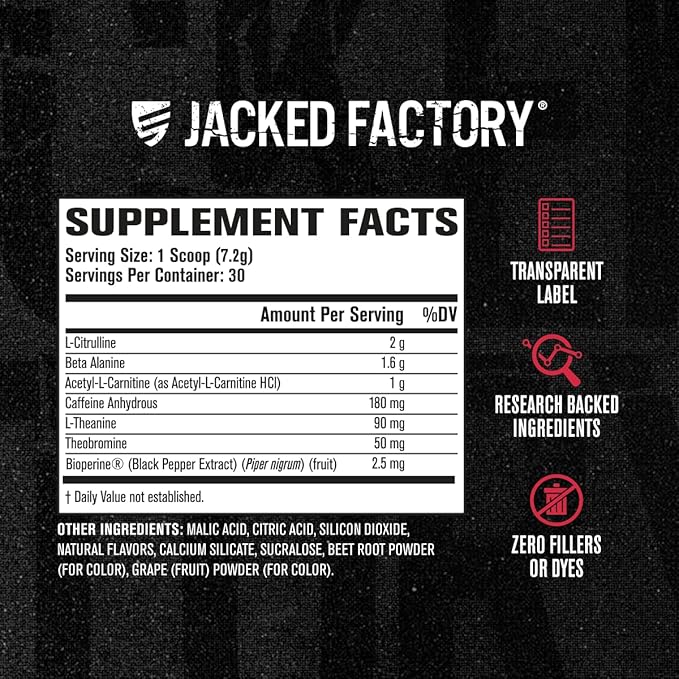 - Manufactured in a cGMP-Certified Facility: Unlike many dietary supplements, all Jacked Factory products are manufactured under stringent quality control standards to ensure proper purity and potency. This formula is completely free of harsh chemicals, fillers, and artificial food dyes.