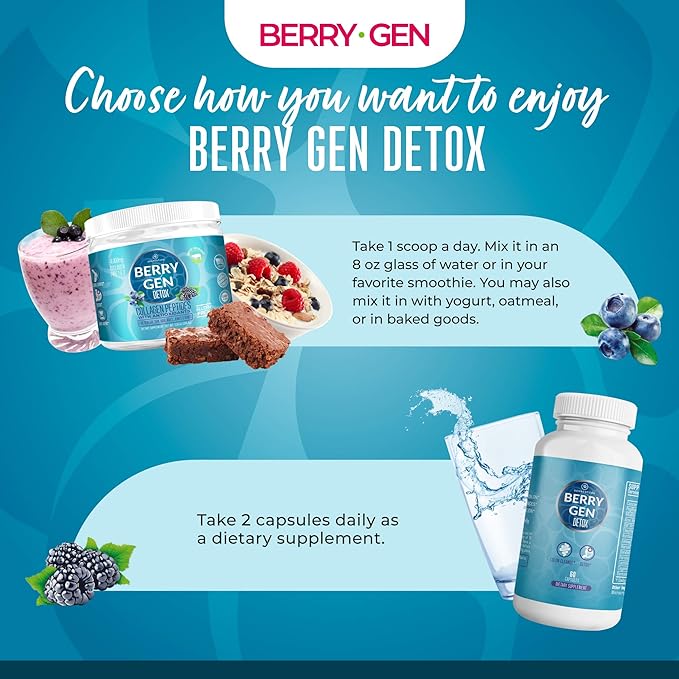 - An easy way to feel good from the inside out: Enjoy the way you maintain a clean and happy tummy with Berry Gen Detox, our herbal supplement designed to support your colon and aid your body’s detoxification process, which can result in a healthy digestive system.