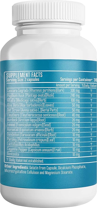 - Natural ingredients: Besides probiotics, our formula contains powerful ingredients like parsley, aloe vera, psyllium husk, fennel, cayenne pepper, dandelion, cascara sagrada, alfalfa, Siberian ginseng, and more.