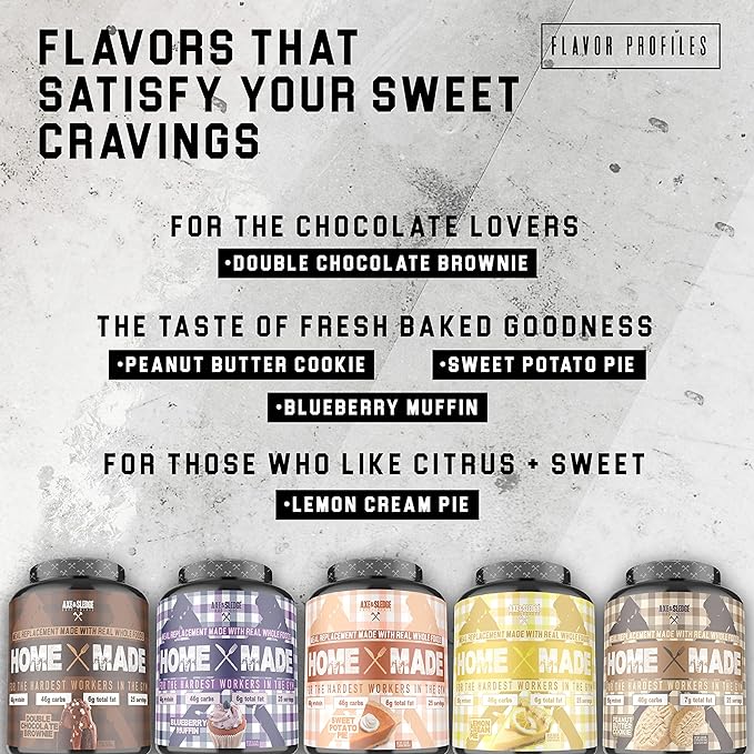 - Home Made uses the highest quality ingredients, such as whole-grain oat flour, sweet potato flour, whey protein, egg protein, brown rice protein, and medium chain triglycerides, to provide you with an adequate amount of macronutrients and micronutrients