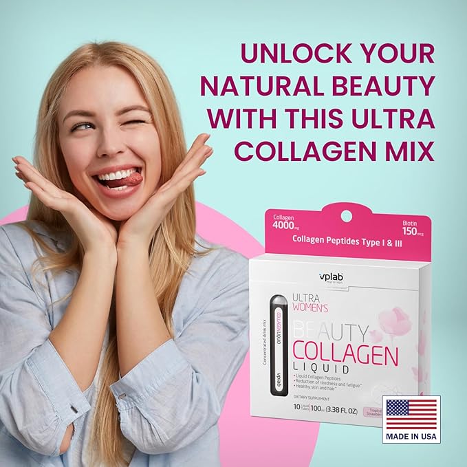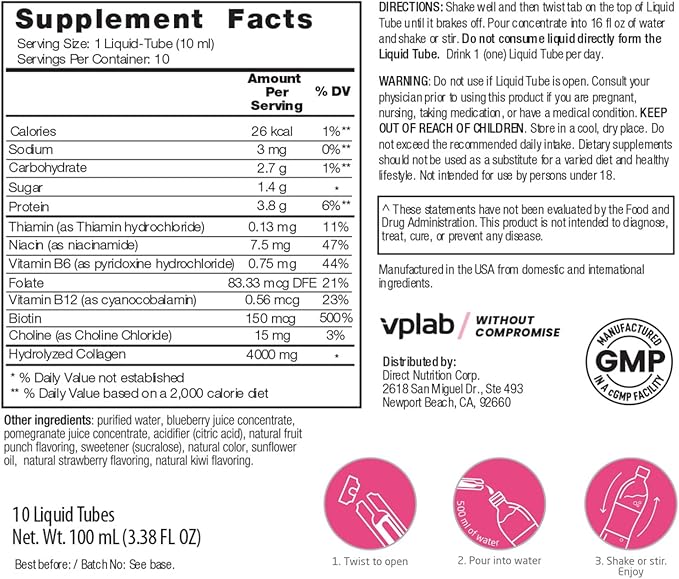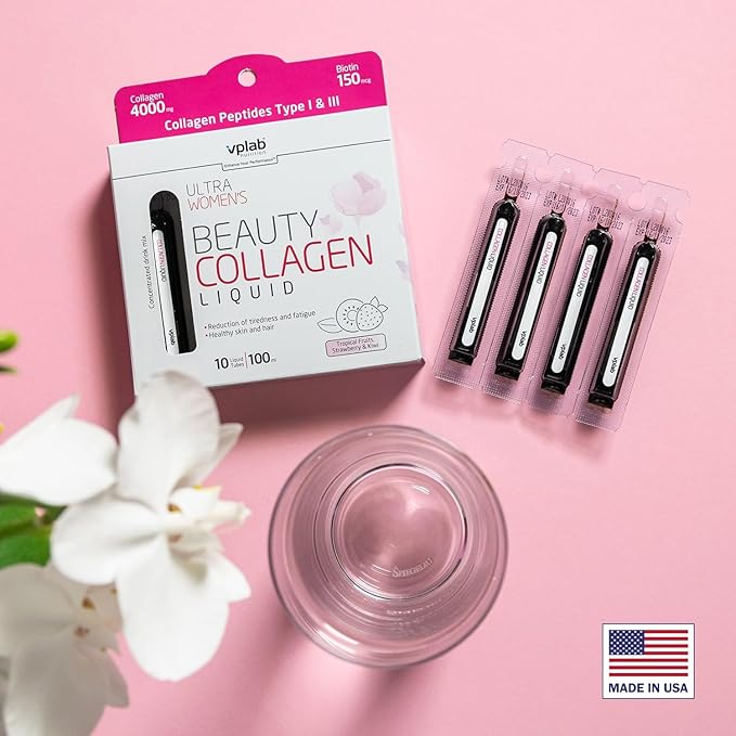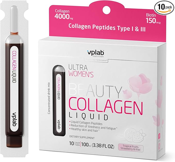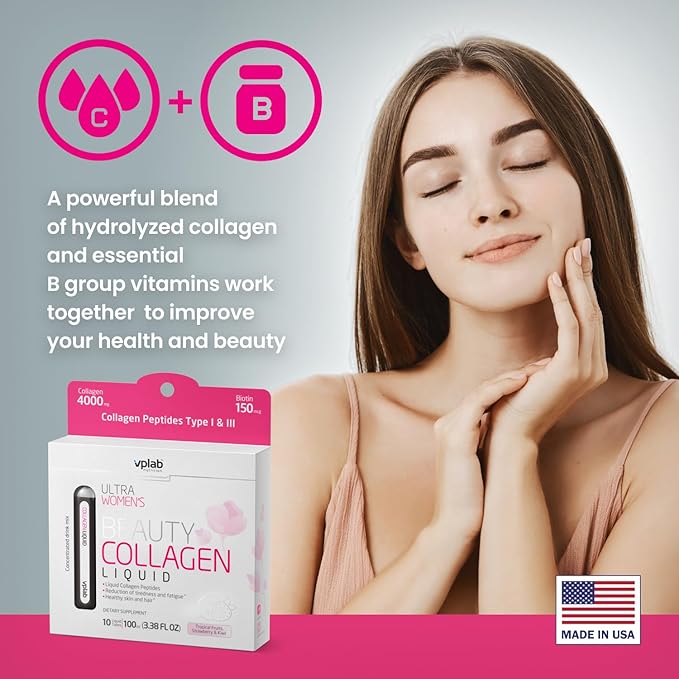 VPLab Ultra Women's Beauty Liquid Collagen - Biotin-Infused Multivitamin Complex with Peptides Type I & III Supplement for Skin, Hair & Nails - Drink Mix for Women Packed with Vitamin B Group,10