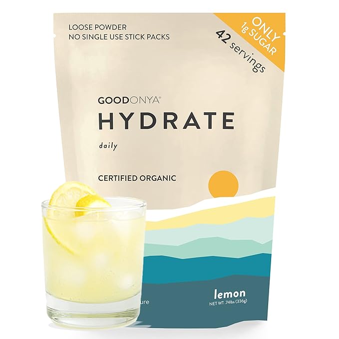 GOODONYA Organic Hydration Electrolyte Powder | Lemon, Coconut Water, Magnesium, Himalayan Pink Salt | Only 1g Sugar, No Artificial Flavors | USDA Organic & Plant-Based | 42 Servings
