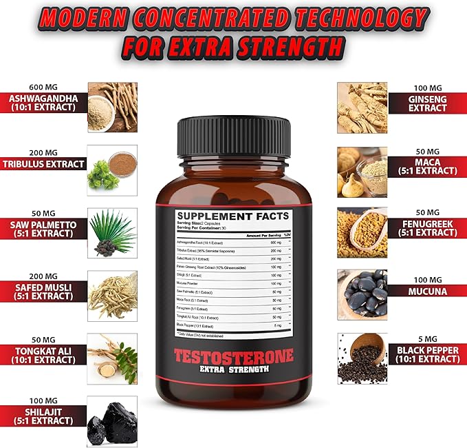 - ✅ Advanced Male Support Supplement with Ashwagandha, Tribulus, Safed Musli, Panax Ginseng, Saw Palmetto, Maca Root, Shilajit, Fenugreek, Mucuna, Tongkat Ali, and Black Pepper; Elevate well-being.