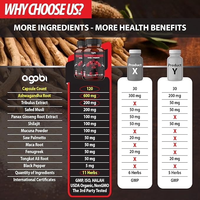 - ✅ 11in1 Extra Formula Booster with High Absorption Agobi Testo Support Complex; Boost stamina, muscle mass, mood, immune system, and energy production for men & women.