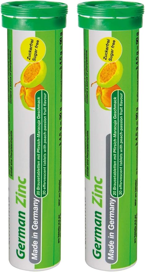 T&D German Zinc 5 mg - 40 Vegan Drink Effervescent Tablets - Peach-Passionfruit Flavor - Made in Germany