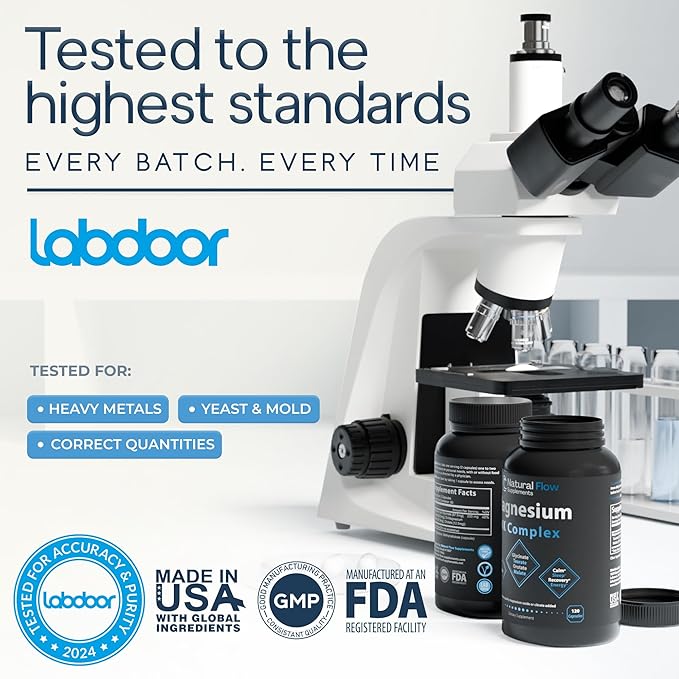 Natural Flow 4X Magnesium Supplement, Magnesium Glycinate, Taurate, Malate, Orotate Complex, Calm Sleep and Cramp Support Blend, No Mag Citrate or Oxide, 120 Capsules
