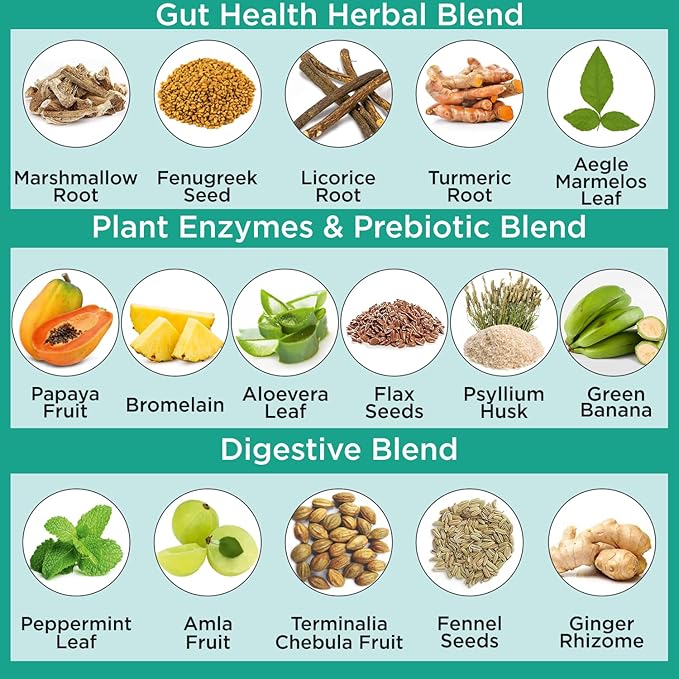 - Bolsters Immunity: Made with organic tinospora cordifolia, turmeric root, papaya, green banana, aegle marmelos leaf, aloevera, fenugreek seed, flax seeds & licorice root extract, our plant based digestive enzymes supplement is also rich in antioxidants that help strengthen immunity