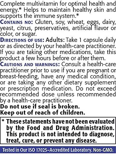 NEW ROOTS HERBAL – Multi (60 Veg Caps)|Vitamins C D E B1 B2 B6 B12, Biotin, Niacin, Zinc | Optimal Health & Energy| Healthy Skin| Supports Immunity