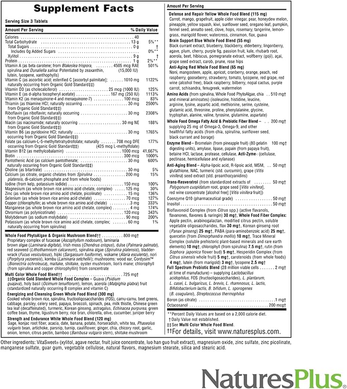 Natures Plus Source of Life Gold Multivitamin - 90 Chewable Tablets, Pack of 2 - with Vitamins D3, B12, K2 & More Than 120 Whole Foods - Blood, Bone & Immune Support - Gluten Free - 30 Servings