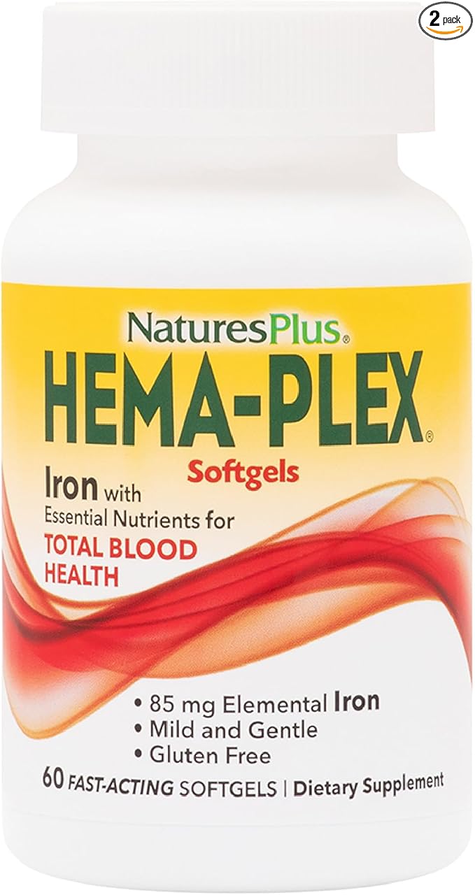 NaturesPlus Hema-Plex Iron - 60 Fast-Acting Softgels - 2 Pack - 85 mg Iron + Vitamin C & Bioflavonoids for Healthy Red Blood Cells - Vegan, Gluten Free - 40 Total Servings