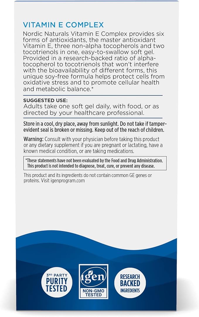 Nordic Naturals Vitamin E Complex, Unflavored - 30 Soft Gels - 6 Forms of Vitamin E for Antioxidant Support - Cellular Protection - Non-GMO - 30 Servings