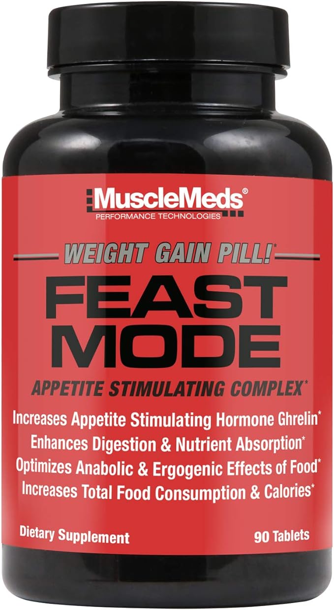 MuscleMeds Feast Mode Appetite Stimulant Weight Gain Pills Digestive Enzymes Safe and Effective 90 Caps, Unflavored, 90 Count