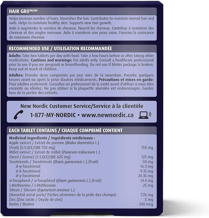 NEW NORDIC Hair GRO, Hair Growth Supplement, Biotin & Palm Fruit Extract Tocotrienols for Natural Regrowth, for Men and Women, 60 Count (Pack of 3)