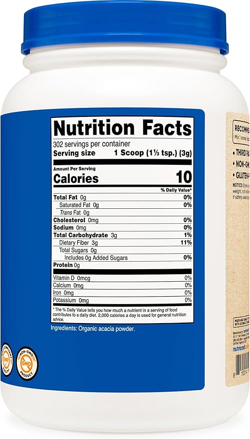 Nutricost Organic Acacia Fiber Powder (2 LB) - USDA Certified Organic, Non-GMO, Gluten Free