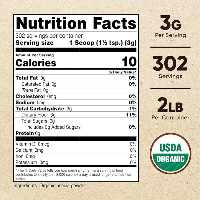 - 3 Grams Of Organic Acacia Fiber Per Serving; Scoop Included