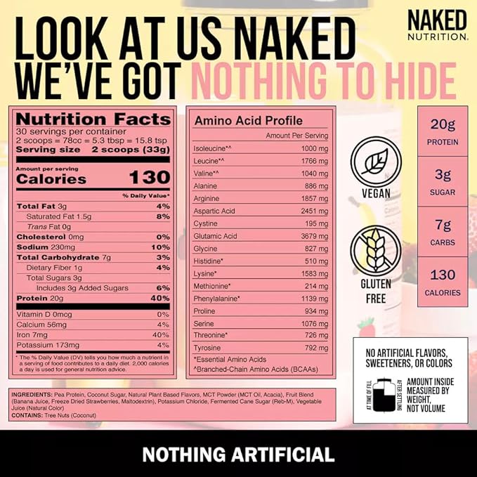 - SUPERIOR PLANT PROTEIN: Dairy-Free and vegan-friendly – made from yellow split peas grown in the USA and Canada. Naked Shake offers a complete amino acid profile, making it the ideal source of plant based protein.